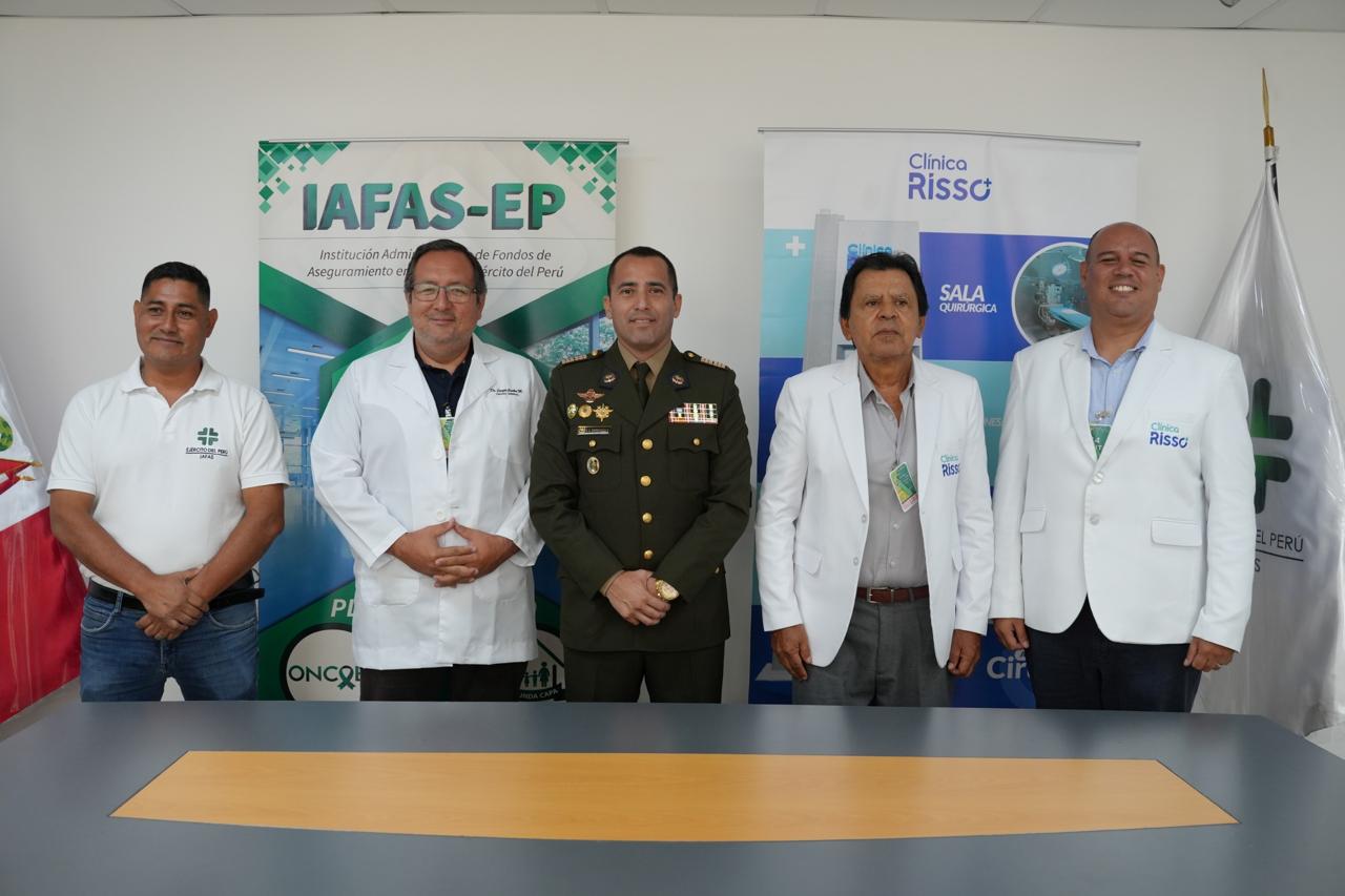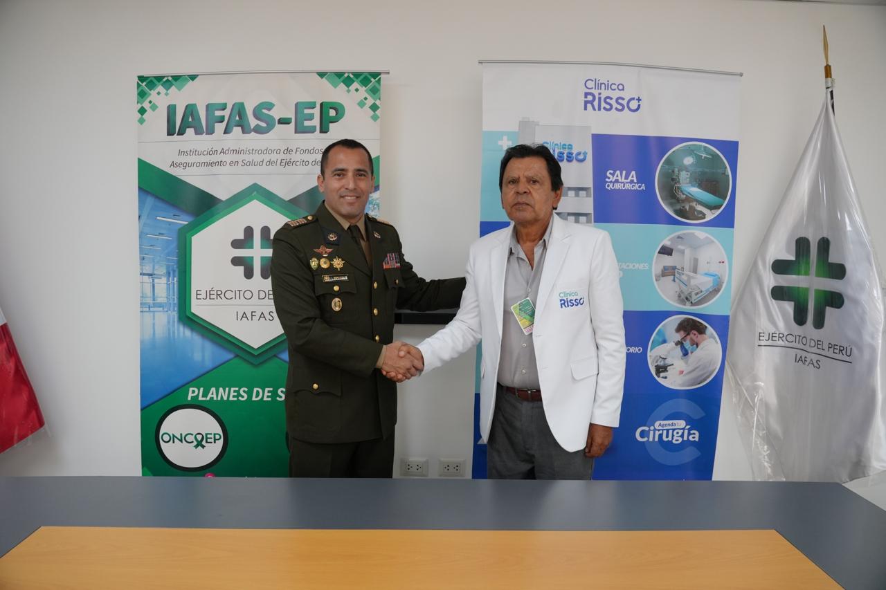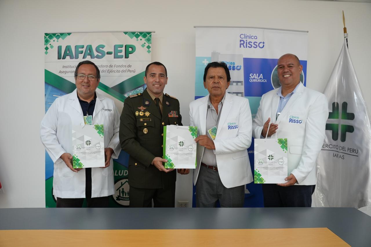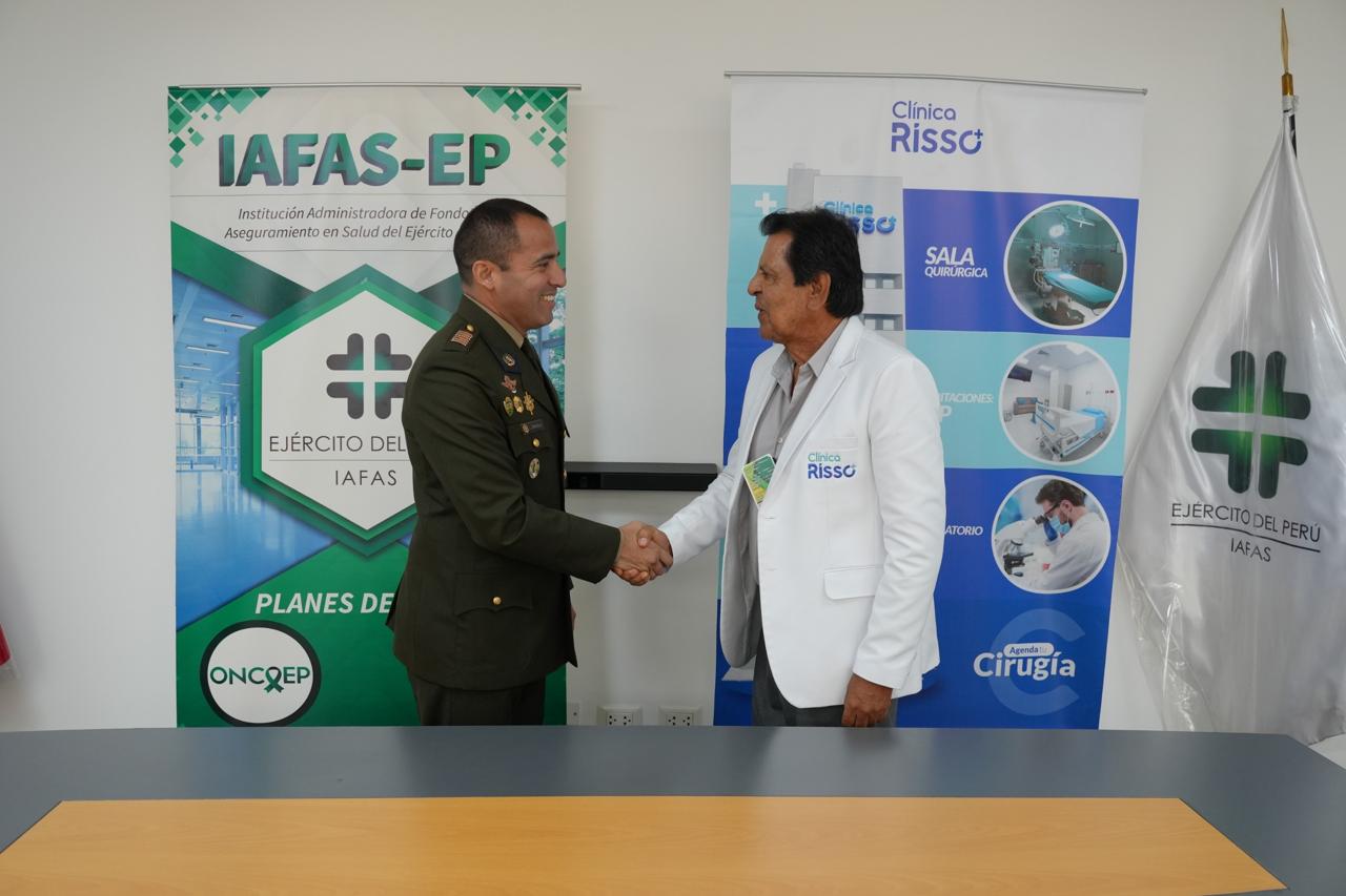 La Institución Administradora de Fondos de Aseguramiento en Salud del Ejército del Perú (IAFAS EP) y la prestigiosa clínica Risso, ubicada en Av. Arequipa 2030, Lince, han firmado un convenio de prestación de servicios de salud. Esta decisión se tomó debido a la excelente calidad de atención y servicios que brinda la referida clínica, La Clínica Risso destaca por su firme compromiso con la salud y el bienestar de quienes acuden en busca de atención médica integral. Esta institución brinda más de 23 especialidades médicas a cargo de profesionales altamente capacitados, ofreciendo servicios diagnósticos, consultas especializadas y procedimientos adaptados a las necesidades de cada paciente. Gracias a este nuevo convenio, más personas podrán acceder a los servicios de esta reconocida clínica, garantizando así una atención médica de primera categoría para todos los beneficiarios de la IAFAS EP.