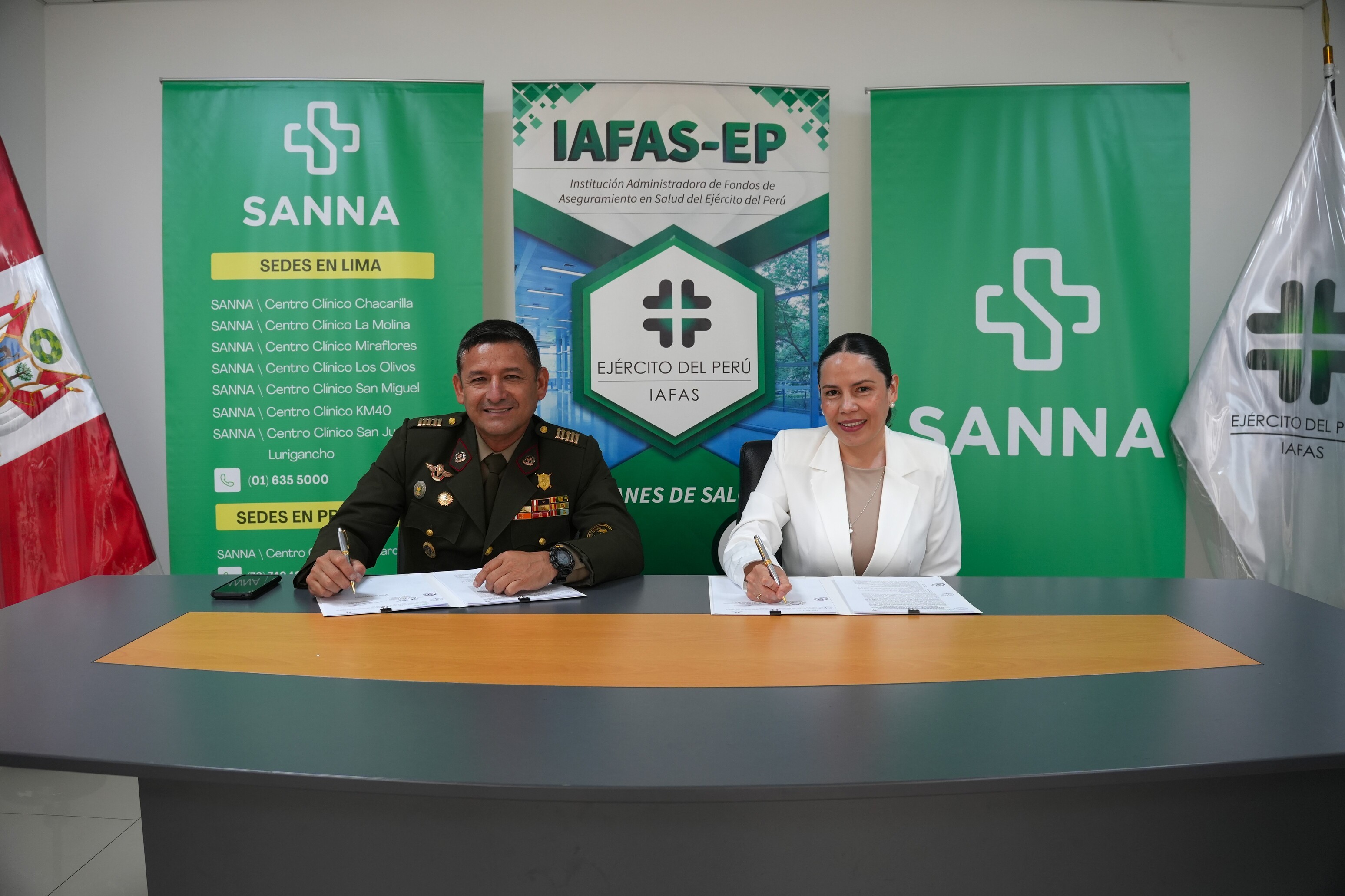 La Institución Administradora de Fondos de Aseguramiento en Salud del Ejército del Perú (IAFAS EP) y la Clínica SANNA han suscrito un importante convenio de prestación de servicios de salud, con el objetivo de fortalecer la cobertura médica en beneficio de la familia militar.