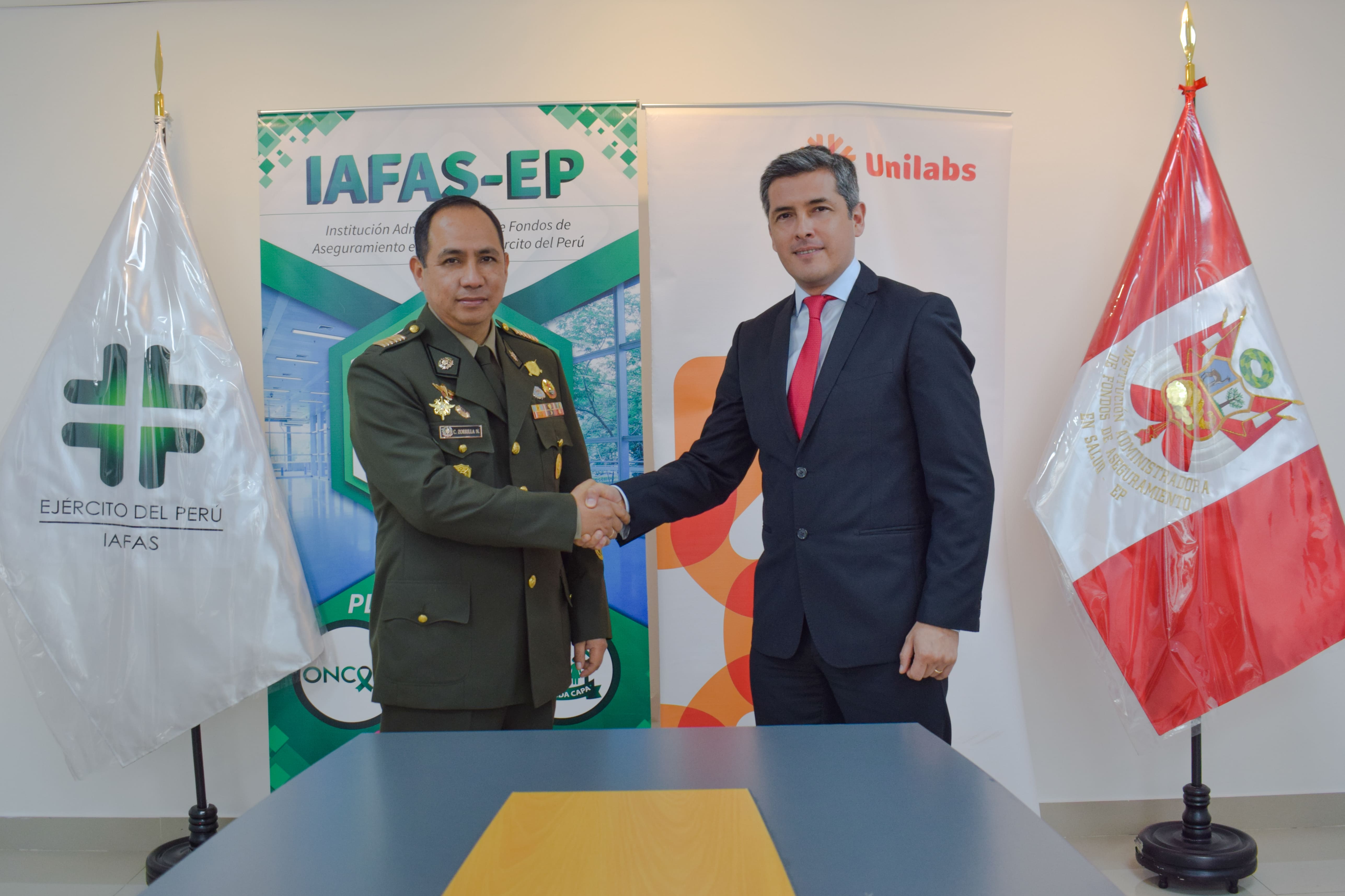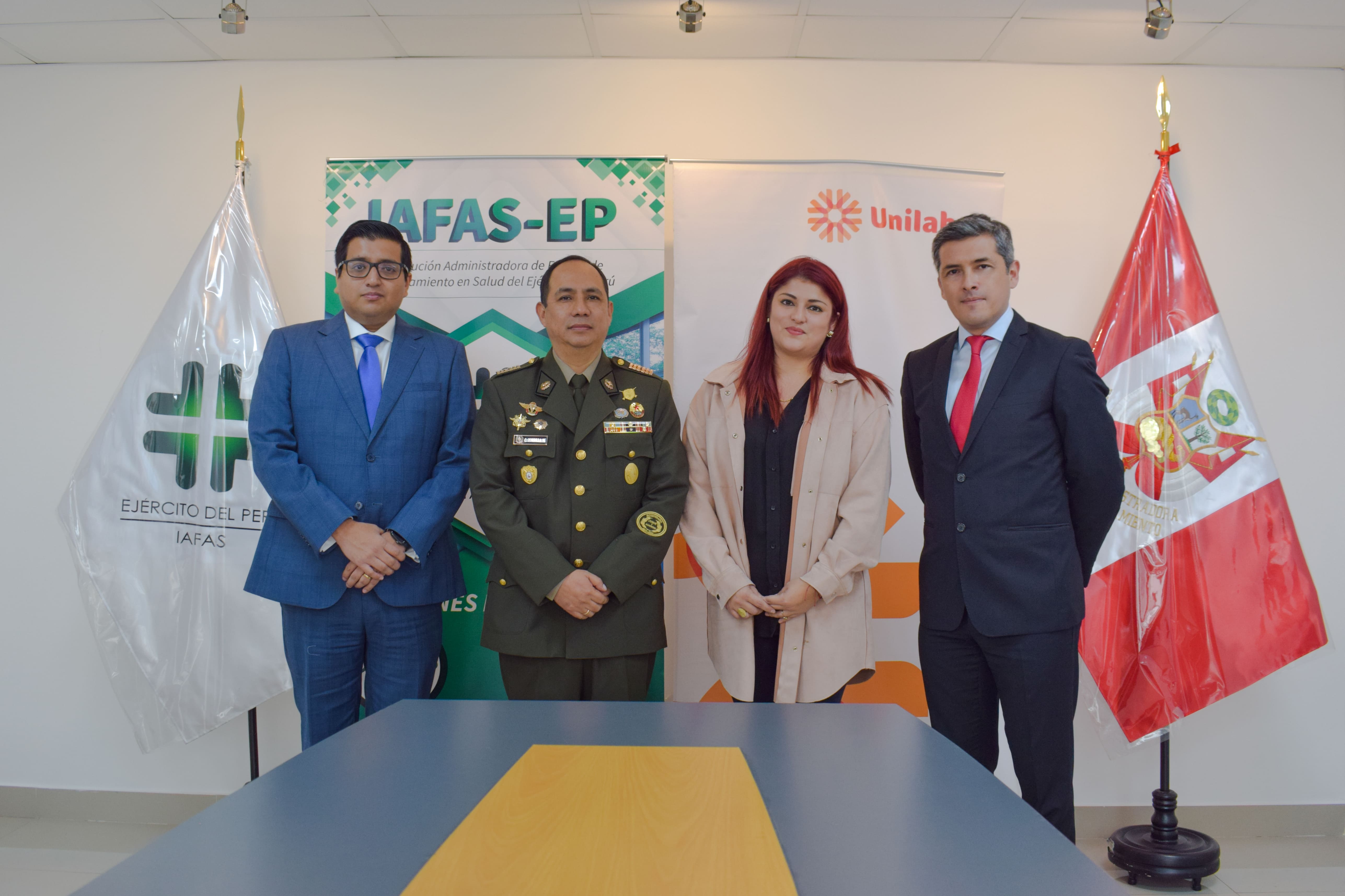 La Institución Administradora de Fondos de Aseguramiento en Salud del Ejército del Perú (IAFAS EP) y el prestigiosa Laboratorio Clínico Unilabs , ubicada en la Avenida Comandante Espinar No 450 Urbanización Santa Cruz Distrito de Miraflores , han firmado un convenio de prestación de servicios de salud. Esta decisión se tomó debido a la excelente calidad de atención y servicios que brinda el referido laboratorio clínico, la cual ha sido reconocida por nuestros afiliados y sus derechohabientes. El Laboratorio Clínico Unilabs se ha destacado por su compromiso con la salud y el bienestar de sus pacientes, ofreciendo una atención personalizada y de alta calidad. Gracias a este nuevo convenio, más personas podrán acceder a los servicios de esta reconocido Laboratorio clínico, garantizando así una atención médica de primera categoría para todos los beneficiarios de la IAFAS EP.